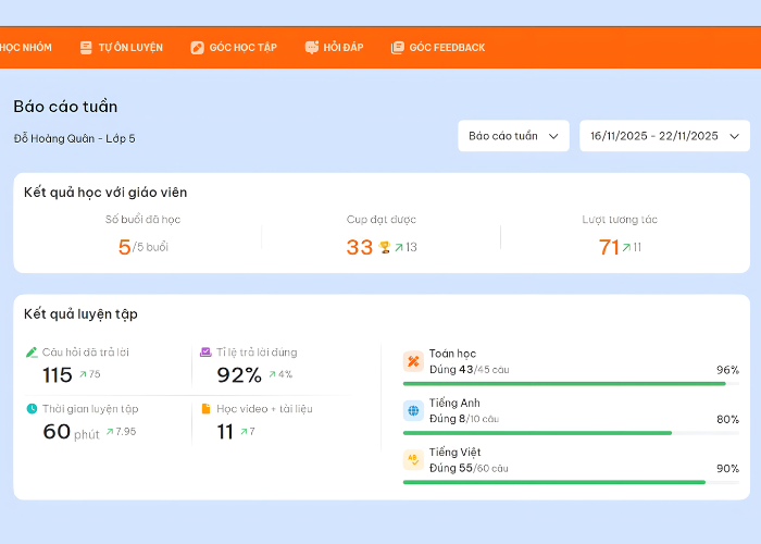 Báo cáo học tập chi tiết, phụ huynh dễ dàng theo dõi